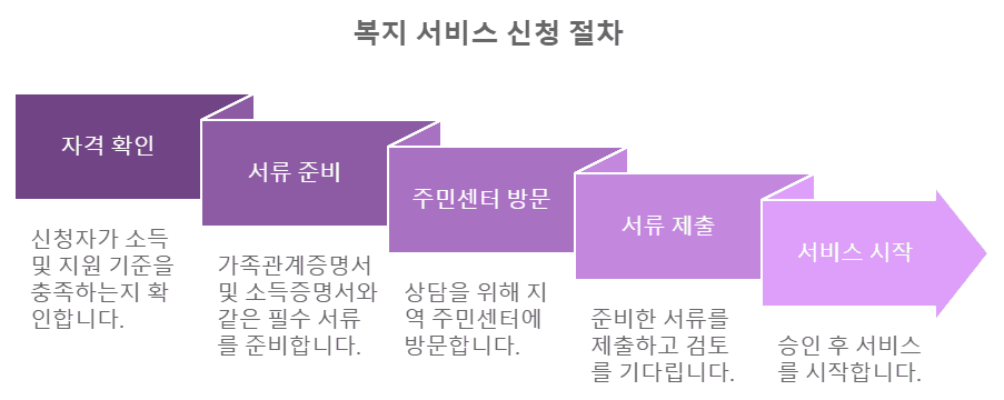 먼저 자신의 조건이 지원 대상에 해당하는지 확인해요. 그다음 필요한 서류를 준비해서 주민센터를 방문하면 돼요. 준비된 서류를 제출하고, 심사를 거쳐 승인이 나면 지원이 시작돼요. 어렵지 않으니 차근차근 따라가 보세요!